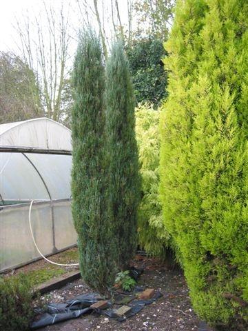 Juniperus virginiana ‘Blue Arrow’ — a narrow evergreen conifer with a tight, columnar form, prized for its steely blue foliage and strong vertical presence in the landscape. The fine-textured scale-like foliage holds its blue color year-round, creating a clean architectural accent. Its extremely narrow habit makes it ideal for tight spaces and formal plantings. Type: Evergreen tree Mature Size: Width: 2–3 ft | Height: 12–15 ft USDA Zones: 4a–9b Form: Narrow, columnar Light: Full sun Soil / Water: Well-drained soil; low to moderate water once established Wildlife: Birds (cover and occasional berries) Features & Landscape Uses: Very narrow upright form for tight spaces 🌿 Steel-blue foliage provides year-round color Excellent for screening, accents, and formal plantings Drought tolerant once established Care: Plant in full sun with well-drained soil. Avoid wet or poorly drained conditions. Minimal pruning needed; maintain natural form. Water regularly during establishment, then reduce.