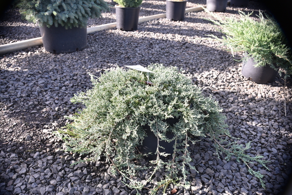 Juniperus horizontalis ‘Wiltonii’ — commonly called Blue Rug juniper — is a low-growing evergreen shrub valued for its dense, mat-forming habit and silvery-blue foliage that intensifies in full sun and often develops purplish tones in winter. Its tightly layered, trailing branches create a uniform ground-hugging carpet, making it one of the most widely used junipers for dependable groundcover. Type: Evergreen shrub Mature Size: Width: 6–8 ft Height: 6–12 in. USDA Zones: 3a–9b Form: Very low, prostrate, mat-forming Light: Full sun Soil: Well-drained soil; thrives in sandy, rocky, and poor soils Water: Low; highly drought tolerant once established Wildlife: Provides shelter for birds; deer resistant Features & Landscape Uses: Excellent for slopes, groundcover, rock gardens, and erosion control. Its uniform growth and strong blue color provide consistent year-round interest. Care: Plant in full sun with excellent drainage. Avoid heavy, wet soils. Minimal pruning is needed; trim lightly only if shaping is desired.