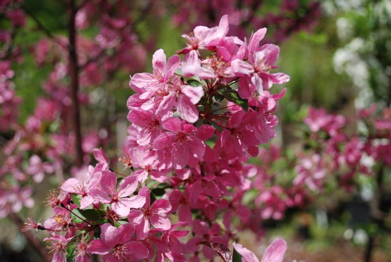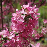 Malus ‘Prairiefire’ is a deciduous flowering crabapple tree with purplish new foliage that matures dark green, deep pink-red spring flowers, persistent purplish-red fruit, and orange fall color. It forms a dense, rounded canopy and is widely grown for its long season of ornamental interest and good disease resistance. Type: Deciduous flowering tree Mature Size: 15–20' W x 15–20' H USDA Zones: 4a–8b Form: Dense, rounded Light: Full sun Soil / Water: Well-drained soil; moderate water Bloom Time / Length: Spring Wildlife: Pollinators, birds Features & Landscape Uses: Excellent as a specimen tree, lawn tree, or street tree. Its standout traits are the red-tinged foliage, strong flower color, persistent fruit, and dependable landscape performance. Missouri Botanical Garden notes the fruit is attractive to birds, and J. Frank Schmidt highlights its disease-resistant foliage and strong overall landscape impact. Care: Plant in full sun with good air circulation and well-drained soil. Avoid overfertilizing, and water regularly while establishing, then during dry spells as needed. UF/IFAS notes crabapples prefer adaptable but not high-pH conditions and that selecting disease-resistant cultivars helps reduce problems.